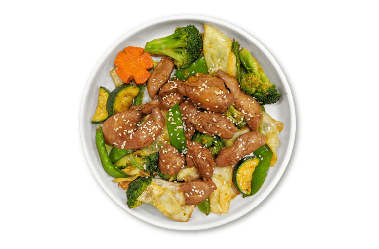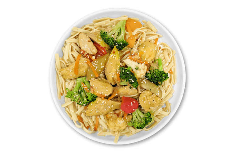 ATHLETE LOW CARBS – Chicken stir fry with broccoli, cabbage, zucchini, and carrots in our low sodium gluten-free teriyaki sauce.