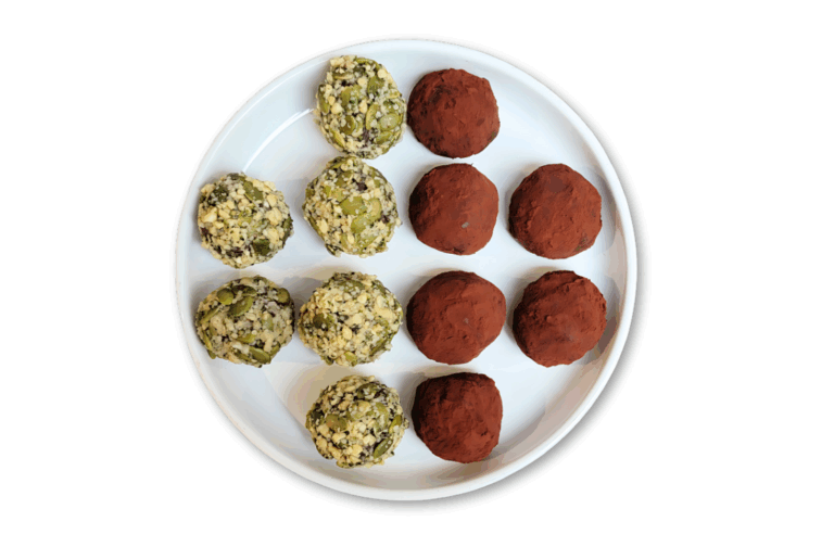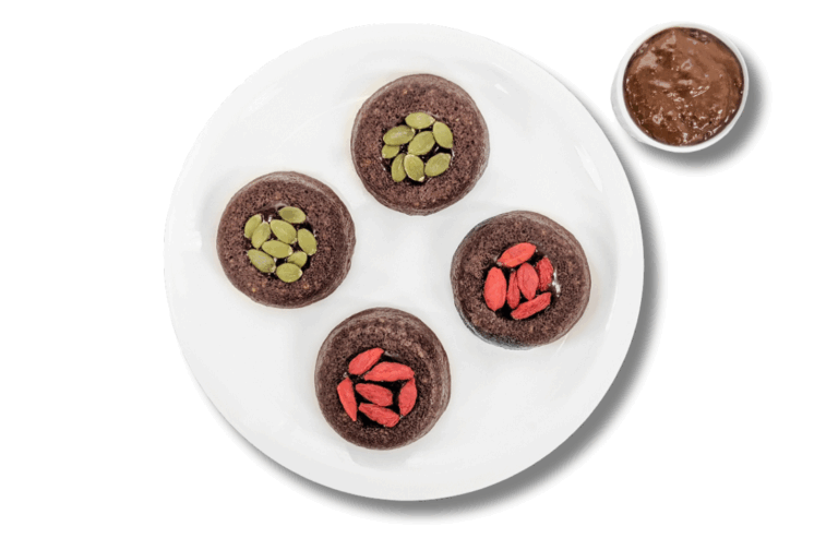 Vega plant protein, oatmeal, banana, eggs, 72% dark chocolate, salt, cacao nibs, coconut, pumpkin seeds, goji berries.