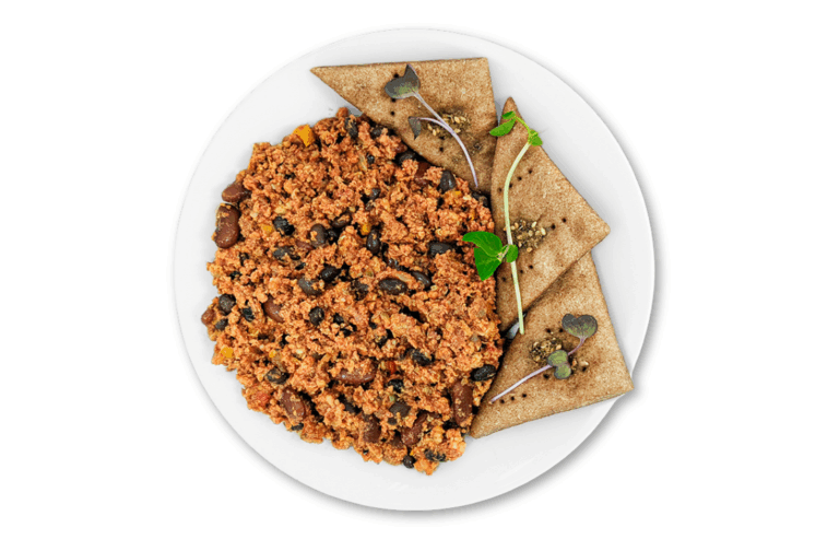 LIFESTYLE – Lean turkey, black beans, red beans and spices. Served with organic spelt flour and za’atar crackers.