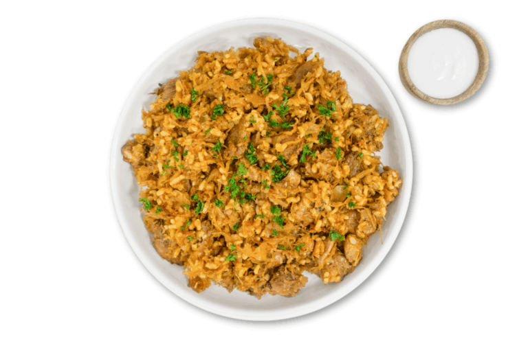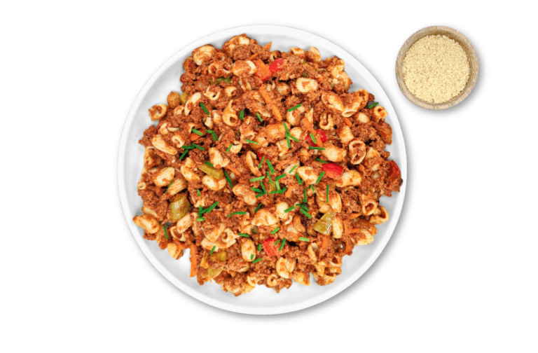 LIFESTYLE – Lean beef and brown rice macaroni. Served with parmesan.