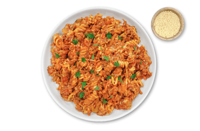 LIFESTYLE – Brown rice penne with our own lean beef, basil and low sodium bolognese sauce.