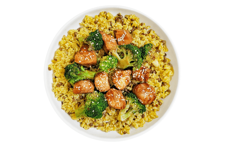LIFESTYLE – Chicken Teriyaki, low sodium gluten-free sauce, broccoli, brown rice and lentils.