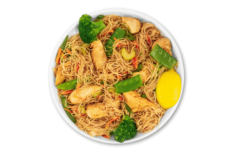 LIFESTYLE – Chicken breast, veggies and brown rice noodles, with a soy-free, gluten-free coconut marinade.