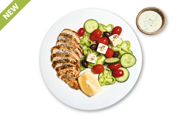 ATHLETE LOW CARBS – Chicken breast, feta, cucumbers, peppers, tomatoes, olives, lemon, oregano, dill. Served with our own tzatziki sauce.