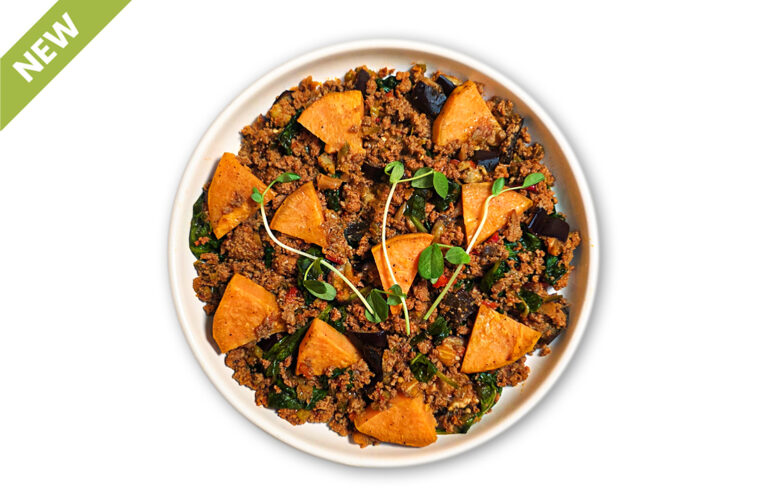 ATHLETE WITH CARBS – Turkey, sweet potato, eggplant, spinach, onions, celery, peppers and spices.
