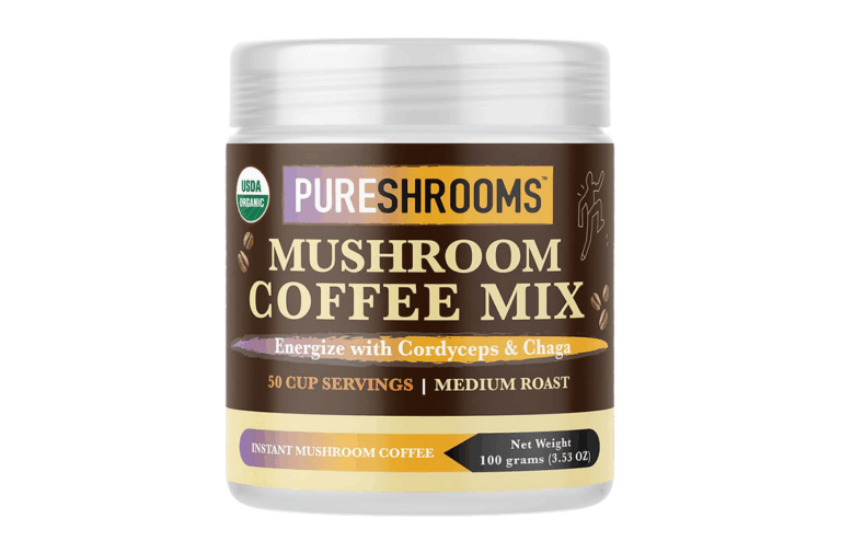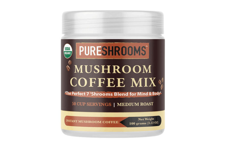 Organic Coffee, Chaga, Turkey Tail, Cordyceps, Lion’s Mane, Reishi, Shiitake, and Maitake (Available in 50 servings).